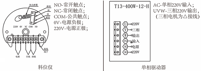 * 振動器可用PLC或時間繼電器設置為通電1min,斷電10min;
