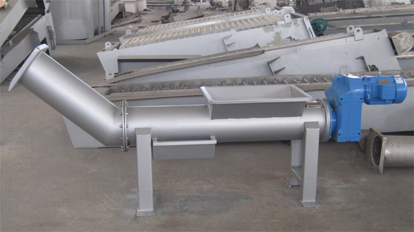 螺旋壓榨機主要適用于柵渣的輸送、脫水處理,可和格柵除污機、輸送機配套使用,把格柵除污機撈取的污渣通過壓榨,排除其水分,以縮小渣污體積。 LY型螺旋壓榨機主要由驅(qū)動裝置、壓榨螺旋、傳送管、排放管、耐磨襯條、排水槽等組成。渣物自進(jìn)料口進(jìn)入壓榨管后被擠壓,進(jìn)入排放管,而廢水則被分離后進(jìn)入排水槽達(dá)到分離目的,襯條采用耐磨鋼襯條,即耐磨,又耐腐蝕。 壓榨筒采用管式結(jié)構(gòu),強度高,耐擠壓,除進(jìn)出料口外均為密閉運行。 壓榨螺旋采用有軸螺旋,葉片為內(nèi)外圓精加工焊接拉制而成,保證螺距及同心度。