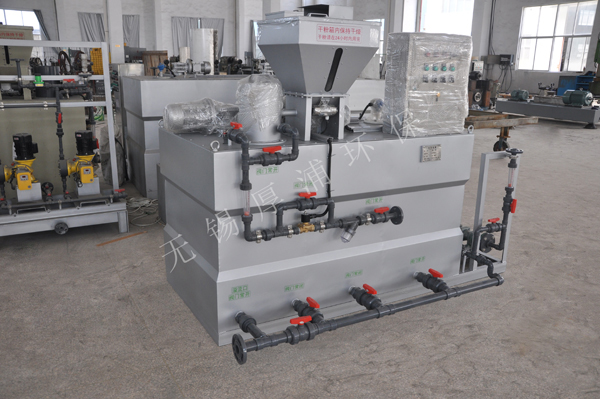 PAM加藥裝置是一個自動、連續(xù)式的絮凝劑溶配裝置,配制溶液范圍為0-5000升/時,濃度為0.1%-0.3%。