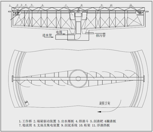 1、傳動(dòng)裝置進(jìn)行了優(yōu)化設(shè)計(jì),效率高,外形趨美觀,可按照用戶要求配進(jìn)口減速機(jī)或軸裝式減速機(jī),美觀耐用; 2、該設(shè)備處理量大,刮集污泥效果好; 3、該設(shè)備結(jié)構(gòu)緊湊,占地面積小,操作維護(hù)方便; 4、該設(shè)備運(yùn)行平穩(wěn),吸泥、刮浮渣能同時(shí)進(jìn)行,能耗省。